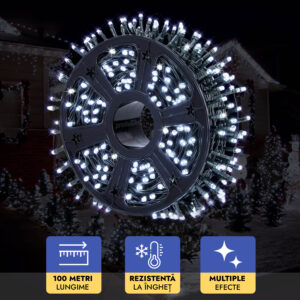 Instalație De Crăciun, Pentru Interior Sau Exterior, 100 Metri Lungime, Multiple Efecte
