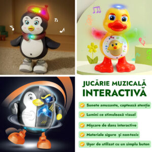 Jucărie Interactiva cu Muzică și Mișcare, Model Pinguin, Rață și Robot