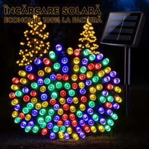 Instalație Solară cu LED-uri, 10 Metri, 100 LED-uri Colorate, Comutare Moduri din Buton