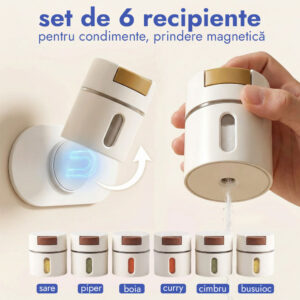 Set de 6 Recipiente Pentru Condimente cu Dozare Precisă, Magnetic, Montare pe Perete