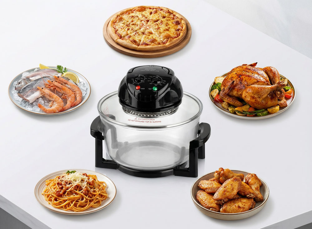 Cuptor Electric cu Aer Cald, Vas de Sticlă, 8 în 1, Accesorii Incluse, Putere 3500W, Gătire Fără Ulei