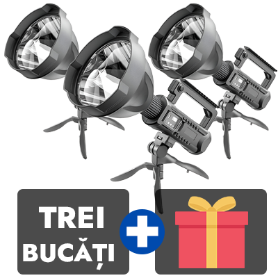 Lanternă Reîncărcabilă cu Trepied, Rază 500m, Încărcare USB, Baterie Externa Incorporată, Rezistentă la Apă